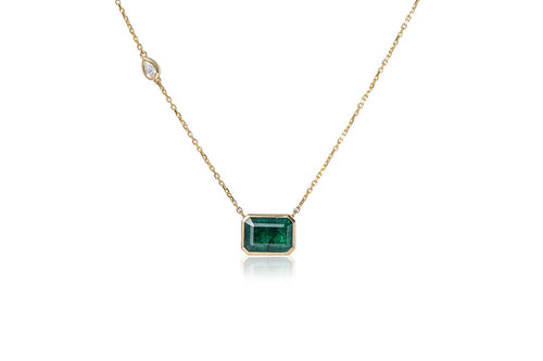 Bezel Set Emerald Necklace (Emerald-Cut)