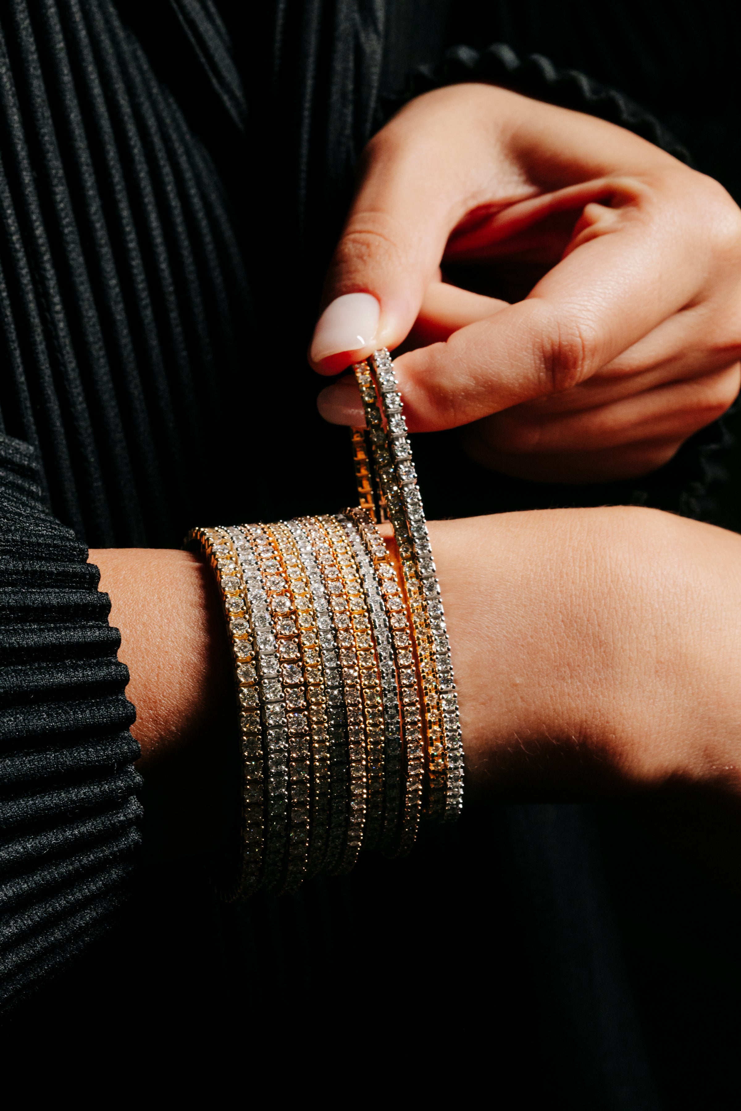 A modern icon designed for real life. The Flexi Diamond Tennis features perfectly calibrated natural diamonds set on a stretch design, allowing it to slip on effortlessly with no clasp required. Comfortable, fluid, and endlessly stackable, it’s the ultimate everyday diamond — polished enough for evening, easy enough for day.