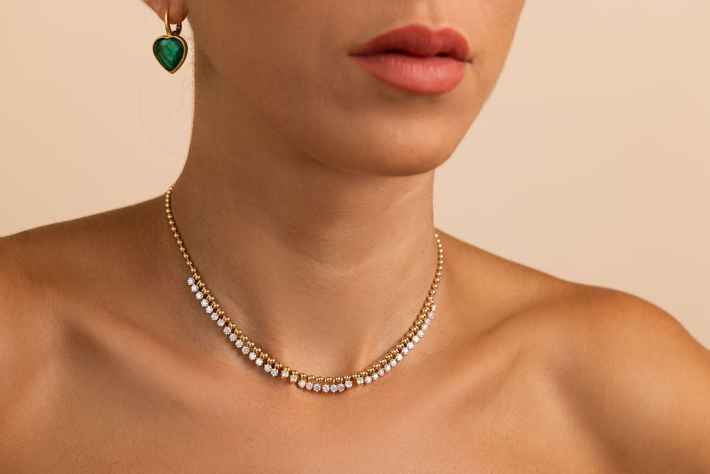 Delicate and refined, the mini version of our Floating Diamond Tennis Necklace offers the same enchanting design in a smaller, more subtle size. Diamonds glimmer as they float off the chain, bringing a touch of everyday elegance with just the right amount of sparkle. Perfect for layering or wearing solo, it’s a must-have piece for effortless glamour.