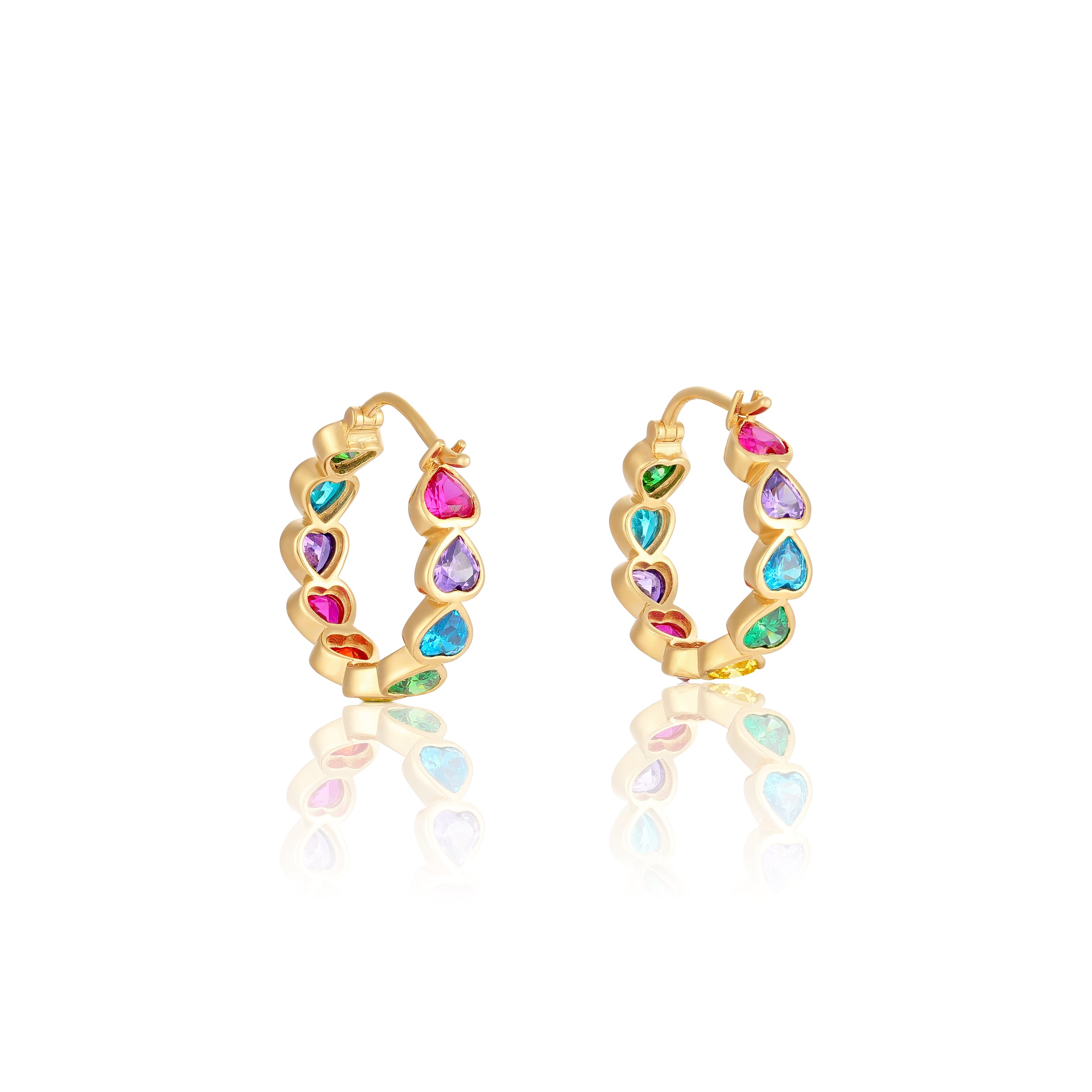 Our Bezel-Set Heart Rainbow Hoops are a joyful extension of our beloved Hearts Collection — where color meets sentiment in the most effortless way. Set with vibrant heart-shaped stones in a smooth bezel finish, they’re designed to move seamlessly from day to night, adding just the right touch of playful elegance. Special, meaningful, and endlessly wearable — these are hearts you’ll never want to take off.